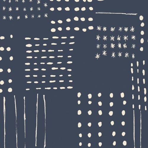 Lightweight canvas with rustic geometric print of lines and dots that feels both earthy and modern. Would work well for a jacket or skirt, excellent for bags, or home decor pillow or recovering a favorite chair.