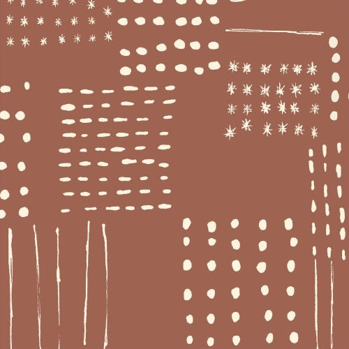 Lightweight canvas with rustic geometric print of lines and dots that feels both earthy and modern. Would work well for a jacket or skirt, excellent for bags, or home decor pillow or recovering a favorite chair.