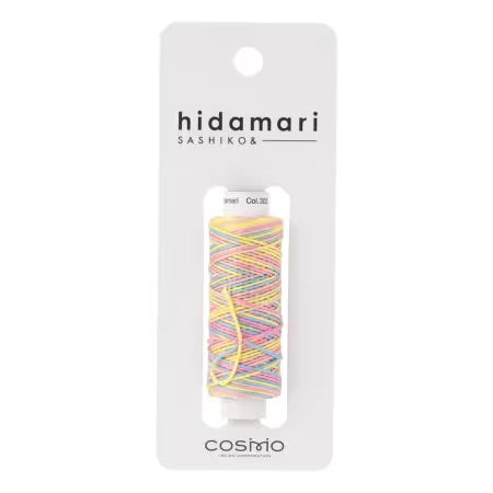 Cosmo sashiko thread Hidamari (which means "sunny spot") brings a fun, bright, warm and happy experience to stitching. This thread is good for stitching, sewing, mending, knitting, crocheting, knotting, decorating and more. 100% Cotton. Size #22/6.