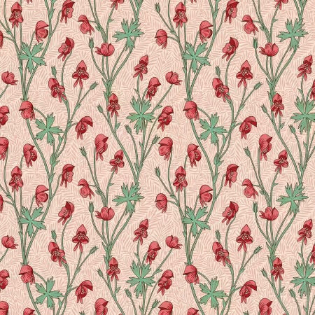 This lawn fabric features whimsical Monkshood flowers in rose and green on a light pink background with subtle geometric patterns. Ideal for a variety of sewing projects from apparel to home decor. Lawn is a classic snd comfortable fabric for summer clothing and the wider bolt means less yardage may be needed for your project.